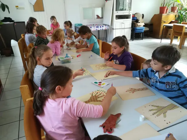 A kisebbeket és ovisokat minden nap elkísérik az egyházközségbe, a nagyobbak már egyedül ballagnak át az iskolából. Megérkezve tágas játszótér és udvar várja őket, ami tavaly készült el. Bevárják a negyedikeseket is, és miután kirohangálták magukat, az ún. “Holland teremben” kézműves, énekes és játékos foglalkozáson tanulnak valami újat. Kettő órakor a felsős diákok is megérkeznek, és együtt ülünk asztalhoz, ahol imádsággal kezdve fogyasztjuk el a finom, meleg ételt. Ezután a legkisebbek átvonulnak az óvodába, ahol minőségi játékokkal játszhatnak és mondókákkal, körjátékokkal szórakoznak. Az iskolások a teremben írják a leckéjüket, alsós és felsős diákok külön. Ha egy-egy diáknak kérdése akad, osztálytársai vagy a tanár a segítségére van. Együttműködve segítenek egymáson, és szívmelengető látni, hogy kötelességük végzése közben közösségi érzésük fejlődik, csiszolódik. A munkatársak amellett, hogy segítenek a házi feladatok elvégzésében, feltérképezik a gyerek erősségeit, és azt, hogy mi okoz nehézséget nekik, és továbbítják megfigyeléseiket a tanítóknak, tanároknak, szülőknek. Egymásért és egymásnak vannak itt, ezt mindenki átérzi.