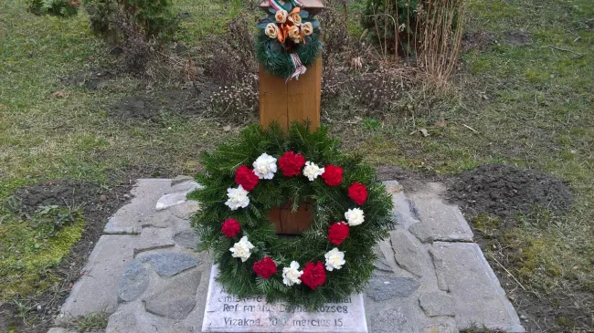 A műsor után elhelyeztük koszorúnkat a templom kertjében található kopjafánál, egy perces néma csenddel emlékeztünk és tisztelegtünk a magyar hősök emléke előtt, fejet hajtva énekeltük nemzeti imádságunkat, Isten áld meg a magyart.