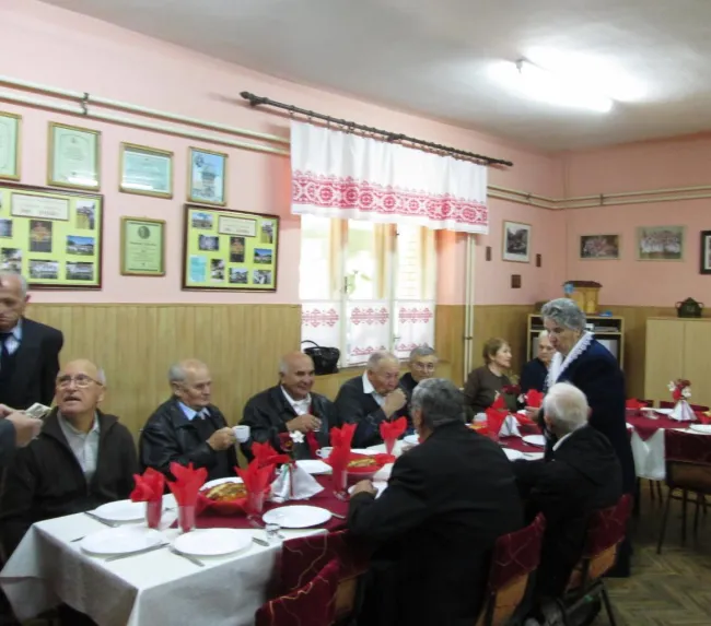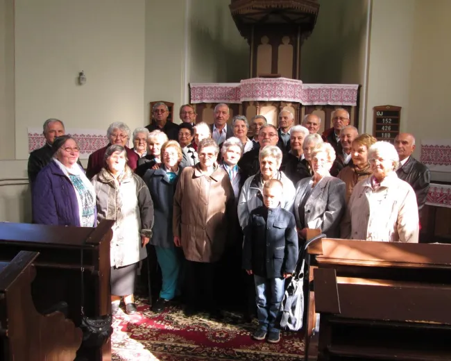 A faluban élő és az ünnepre haza érkezett hetven évesek köszöntése a délelőtti ünnepi istentiszteleten kezdődött. A Dél-bánáti Református Keresztyén Egyház püspöke, Halász Béla a Zsoltárok könyvének 90. részéből a 10-12. versével kezdte meg az ünnepi igehirdetést, majd az áldást követően Szilágyi Judit tiszteletes asszony Szakály Éva: Élet és halál című versének felolvasásával ajándékozta meg az ünnepelteket. A püspök úr reménykeltő gondolatai és az ünnepi istentisztelet befejeztével a 29 köszöntött a Tamási Áron Székely-Magyar Művelődési Egyesület kistermében néhány órás örömteli pillanatot töltött el. Alkalmuk adódott a közös gyerekkori élmények felelevenítésére, továbbá megoszthatták életútjaik boldog, vagy akár szomorú történéseit. Fáradságot nem sajnálva, más településekről, sőt külföldről is hazajöttek a találkozóra, többek között jelen volt a telepítő lelkész, Thomka Károly dédunokája is, Thomka Miklós Gábor. A régi iskolai csoportképekkel és a múltban történt események felidézésével emlékeztek az élők sorából már eltávozott 22 kortársról, az élet kísérője, öröm és bánat egyaránt benne volt a napban. A családias, bensőséges hangulatban elfogyasztott ebéd közös nótázással ért véget és a következő viszontlátás reményében búcsúztak el egymástól.