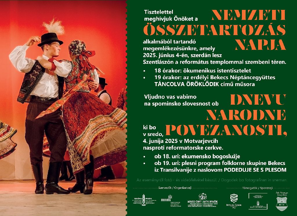 Június 4-én este Szentlászlón tartották meg Nemzeti Összetartozás Napja alkalmából a megemlékezést. Az ünnepi program egy ökumenikus istentisztelettel kezdődött, majd Orban Dušan, a Muravidéki Magyar Önkormányzati Nemzeti Közösség Tanácsának elnöke mondott ünnepi beszédet.