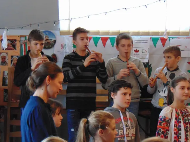 A népzenei kurzus záróakkordjaként a gyermekek műsorral készültek, amelyen bemutatták az újonnan elsajátított dallamokat, énekeket, táncokat, amelyeket a szülők és a falubeliek is megcsodáltak. A műsor kezdetén Hunyadi Péter, az egyesület elnöke köszöntötte a jelenlévőket, majd következett a zenés-táncos összeállítás. A nagy moldvai pusztinai gyermekzenekar szolgáltatta a muzsikát, míg a többiek táncoltak. Ezt követően Carina énekes tanítványai következtek, majd végül a nagyobbak bemutatták a Csontkirály és Babkirály farsangi csángó magyar mesejátékot.