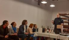 November 23-ai szombat estéjén borkóstolásra került sor. A kolozsvári Borsarock tulajdonosa, Illyés Sándor, rövid előadást tartott a szőlőtermelésről, szüretelési titkokról, borászatról. Ezt követően különböző erdélyi és magyarországi termelőtől 5 minőségi bort mutatott be, amiket érdeklődve kóstolgattunk. Kezdtük egy könnyű, fehér, gyöngyöző borral, majd a rozé és a vörösbor különböző ízlelőbimbóinkat csiklandozta. Közben gasztronómiai tudásunk is bővült, megtudtuk, melyik bort milyen ételhez kínáljunk, milyen hőmérsékleten fogyasszuk. Ha valaki bizonytalan a borválasztásban, nyugodtan befordulhat a kolozsvári borszaküzletbe.