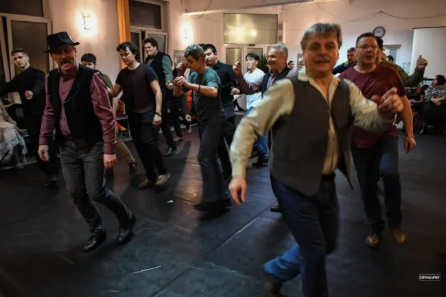 A programot 19 órakor egy intenzív tanítással kezdtük. Ezúttal a mezőségi Ördöngösfüzes táncait hoztam el Brassóba. Ez a vidék a néptáncosok számára igazi kincsesbánya: a férfitáncok dinamikája és a páros táncok finom eleganciája olyan tartást ad, amit minden magyarnak éreznie kellene.