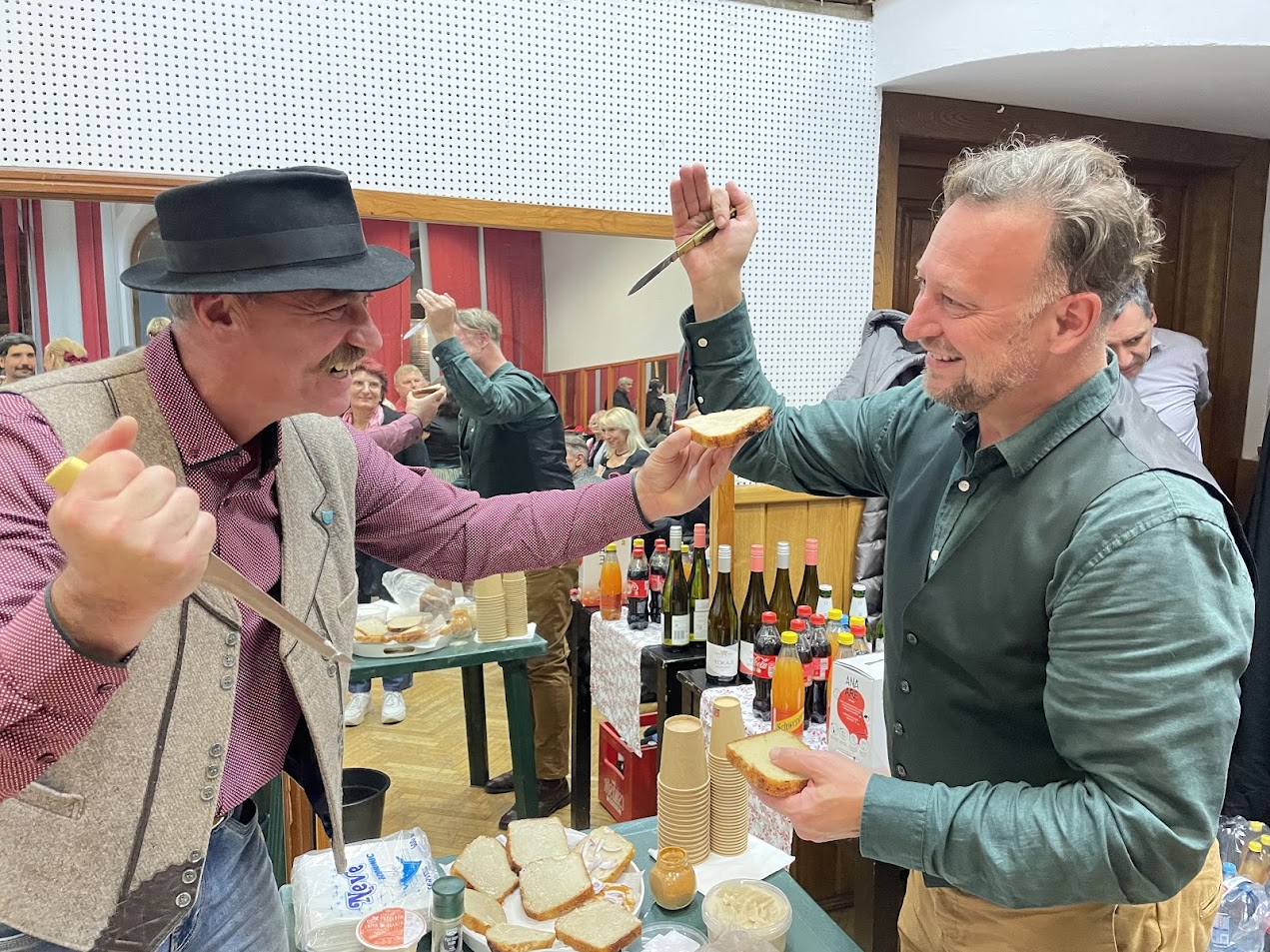 Adományokból, zsír és tepertőkrém került, mint kosarasbálkor a néptáncosok pogácsát bort hoztak, hangulathoz kell ennél több?!