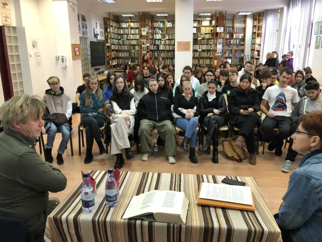 A rendhagyó irodalomóra Petőfi világának bemutatásával folytatódott, melynek során Háy János íróval, költővel Kun-Gazda Kinga-Viola magyar szakos tanárnő beszélgetett Petőfi költészetének értékeiről, időszerűségéről. Egy irodalmi alkotás születésének körülményeiről a meghívott előadó így fogalmazott: