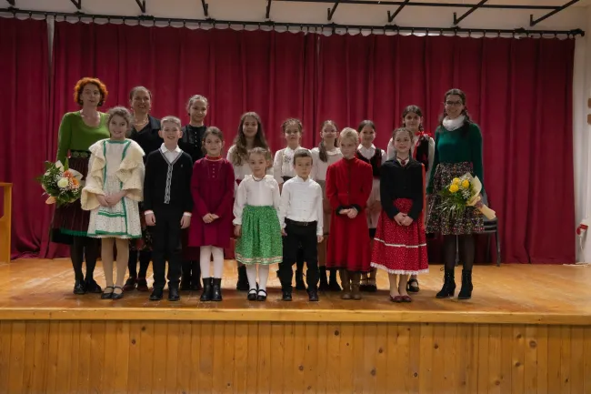A háromtagú zsűri Kincses Olga néptáncoktató, Csáki Izabella énektanár, és jómagam, 13 versenyzőnek javasoltuk a marosvásárhelyi megyei fordulón való részvételt. Igazi lélekemelő közösségi élmény volt, a sok csillogó szemű dalos kedvű gyerekkel a közösen énekelni.