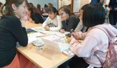 Ilyen a minden évben megrendezésre kerülő Vícejazyčnost je bohatství (magyarul: a Többnyelvűség gazdagság) elnevezésű verseny, amely során arra biztatják a diákokat Csehország szerte, hogy más – lehetőleg őseik nyelvén – alkossanak irodalmi műveket, de ugyanúgy más kreatív pályaműveket is várnak egy adott témára: legyen az képregény, szobor, festmény stb. A 2019-es téma egy-egy ismert személy bemutatása – lehetett az művész, tudós, sportoló is; indulhattak egyénileg és csoportonként is. Fridát, Teslát, Masarykot, Klicskót és még sok érdekes embert láthattunk vásznon, kockán, vagy éppen képzelt riport formájában. A díjátadó idén rendhagyó módon történt. Az Európai Ház ugyanis megszólította a Zaedno Egyesületet, hadd legyen gyerekek számára is egy Európai Nyelvi koktélbár (avagy Speak dating junior), ne csak a felnőtteknek, ahogy az lenni szokott a nyelvek európai napja alkalmából. Így november 8-án randira hívták a díjazott diákokat az Európai Házba: ismerkedjenek meg 9 nyelvvel egy óra alatt. Vajon mit lehet megtanítani, illetve megtanulni 5 perc alatt? Ez a kihívás! Minden nyelvre ugyanis 5 perc jutott, és három osztály kapott erre lehetőséget. Bolgár, német, orosz, roma, lengyel, görög, szlovák, horvát és természetesen magyar asztalokat készítettünk elő, azok körül mozogtak a diákok két-három fős csoportban. Magam a magyar nyelvet és kultúrát igyekeztem a lehető legjobban bemutatni. Készítettem az asztalra térképet Magyarországról, a finnugor népek elhelyezkedéséről, a magyarok vándorlásáról, egy magyar családtól kaptam Rubik kockákat, játék pulikutyákat, egyéb szemléltető eszközöket, amelyekkel reményeim szerint könnyebben meg lehetett szólítani a tanulókat.