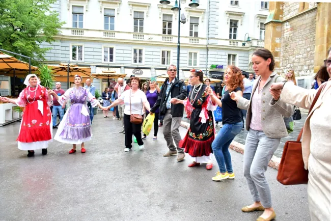 Délután magyar kulturális flashmobra került sor, melyen a szentlászlói MKE Petőfi Sándor táncegyüttes, illetve a csantavéri Mendicus Művészeti Központ tamburazenekarának felvonulása volt látható Szarajevó turisztikai központjában, a Baščaršiján. Mialatt a meghívott magyarországi vendégek, valamint az érintett magyar egyesületek felvonultak a művészeti együttesekkel, számos helyi érdeklődő és turista csatlakozott a menethez. Végül a Jézus Szíve Székesegyház elé érkezve igen nagy közönség előtt megkezdődhettek az előadások.
