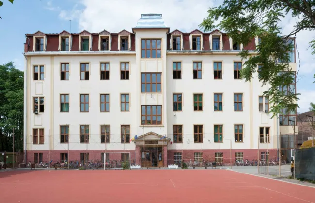 Itt tanítok, itt lakom. A fő művében. A Gerhardinumban (az egykori Temesvári Piarista Gimnáziumban).