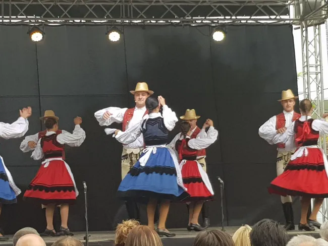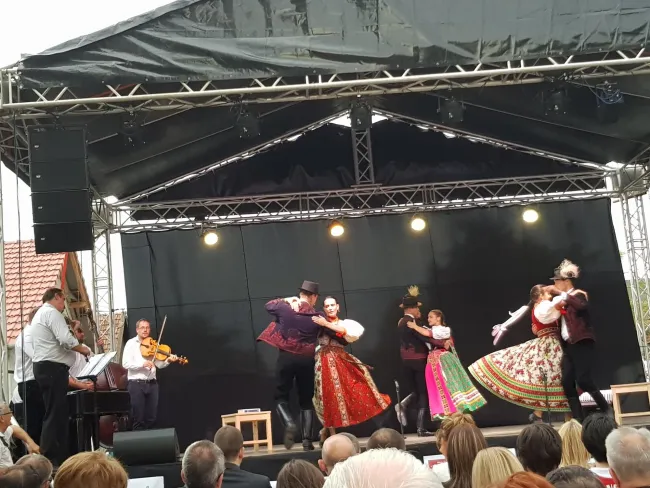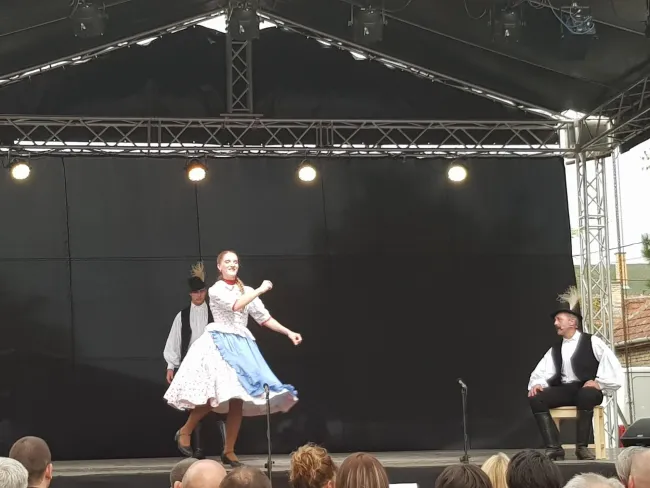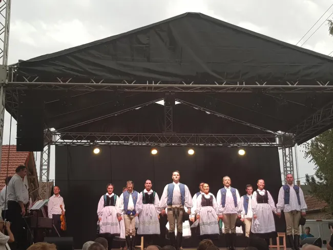 A templomszentelési szentmisét és Potápi Árpád János nemzetpolitikáért felelős államtitkár köszöntőbeszédét követően vették talpuk alá a nagyszínpadot a csíkszeredai táncegyüttes tagjai, akik az Emberi Erőforrások Minisztériuma által támogatott délvidéki turné keretében Óbecse és Topolya után érkeztek a településre.