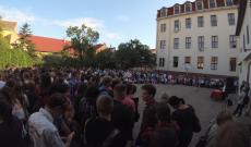 A tanévnyitó ’világi’ részét követően, 11 óra 30 perctől megtelt az iskola melletti plébániatemplom az együtt éneklő és imádkozó ifjúsággal, ahol az ökumenikus istentiszteleten az Úr áldását Szilvágyi Zsolt kanonok és Fazakas Csaba református lelkipásztor együtt kérte a kezdődő tanévre.