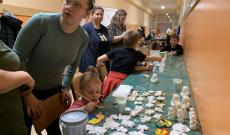 Délre elkészült a finom csirkepaprikás, mely az iskola udvarán rotyogott két hatalmas üstben, és a kis ügyes kezek megetethették pocakjukat. A foglalkozások viszont nem jártak le. Délután újabb portékák elkészítésére került sor. A pár esztendős kis csöppségek sem unatkozhattak, hiszen számukra is nyitva állt a baba sarok, ahol fapálcikából lehetett ajtó- illetve karácsonyfadíszt készíteni.