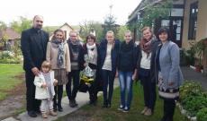 Koródi Levente tiszteletes úr felesége, Kiskapus kis magyar közössége is nagy szeretettel fogadott bennünket. A templomkertbe érve kis vendégvárással kedveskedtek nekünk és az érdeklődőknek. Felemelő érzés volt számunkra, hogy a település legrégebbi épületében, a Kiskapusi Evangélikus-Lutheránus Egyházközség XIII. században épült templomának falai között lehettünk, és egy olyan közösségnek vihettünk egy kis csokrot, összeállítást, ahol a föld újra szomjazik, ahol várják, hogy újra kikelhessen az elültetett mag.