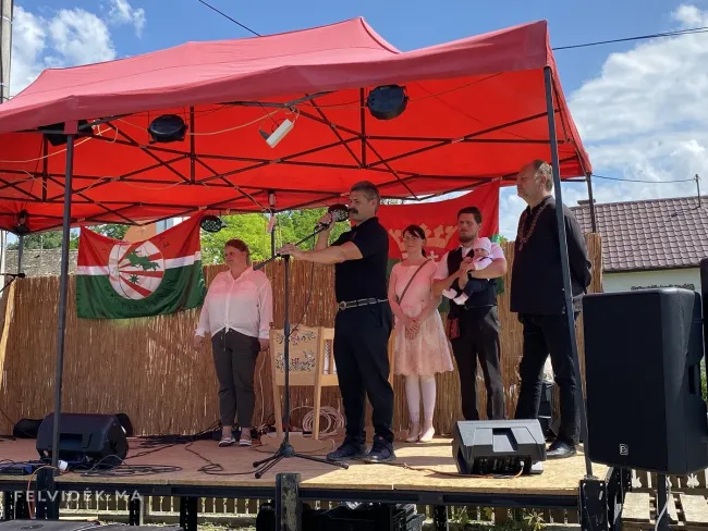Átadta a Rákóczi Szövetség Első könyvem-babanaplóját, majd Mudi Róbert, a berzétei lelkipásztor kért áldást a gyermekre, majd minden jelenlévőre is.