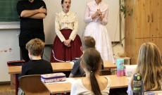 Mi már vasárnap megérkeztünk a szállásra, hogy hétfőn friss erővel vághassunk neki a napnak. Délelőtt két osztályhoz, a negyedikesekhez és a hatodikosokhoz mentünk be elmesélni, honnan jöttünk, s tanítani nekik dalokat. A gyerekeknek nagyon tetszettek a viseleteink és lelkesen válaszoltak kérdéseinkre, énekelték a dalokat. Majd a közösen eltöltött ebéd után indulhatott a “vetélkedő”, ahol megmutathattuk ki mivel készült.
