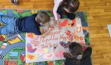 A kisdiákok egy-egy madarat megdíszítve, majd a nagyméretű karton virág motívumain, feliratán dolgozva alkották meg a nagy közös képet. Bár még tart a visszaszámlálás szeptember 30-ig, ezzel a plakáttal szeretnénk ráhangolódni a mesés napra és mások figyelmét is felkelteni. Gratulálok a gyerekeknek az elkészült alkotáshoz!