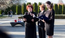 A vukovári magyarok megemlékezésének első állomása a helyi emléktemető volt. Délután két órára vártuk a vendégeket a főbejáratnál, akikkel együtt vonultunk a temető főkeresztjéhez. Jakumetović Rozália, a vukovári magyarok vezetője köszöntötte a megjelenteket. Beszédében hangsúlyozta, hogy Vukovár magyarjai hősiesen kiálltak hazájukért, az életüket adták érte, amiért hálával tartozunk nekik. Utána felsorolásra került a közel félszáz magyar hősi halott neve, és tisztelegve emlékük előtt egy perces csendet tartottunk. Elhangzott ezt követően Bródy János szerzeménye, a Hej tulipán, tulipán című dal: