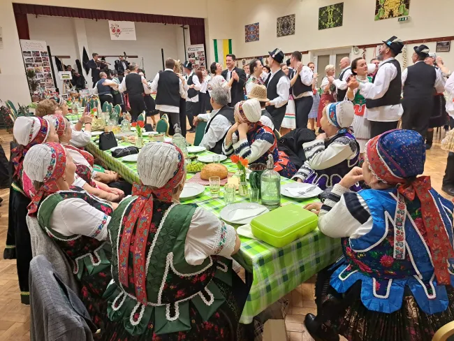 Mindenki nagyon szép, színes népviseletben érkezett. Többségük a bodoki és pogrányi népviseletet viselték: többféle vászon- vagy gyolcsingen női mellényt, amelyet egész Zoboralján pruszliknak hívnak, csípőszélesítésre ún. fart viseltek és a szoknya elé kötény került. A zenéről Hanusz Zoltán és zenekara gondoskodott. Nem hiányzott az acél húros hangszerek királynője sem, a cimbalom.