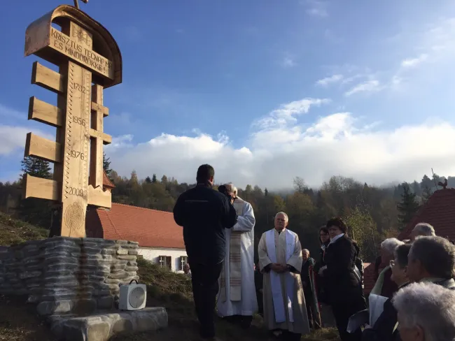 Kelemen Dénes, háromszéki vitéz, nyugalmazott tanár egy saját készítésű faragott keresztet készített Gyimesbükk számára e jeles, szép ünnepre. A művész bemutatta a jelenlévők számára az alkotást, amelynek kicsinyített mása a Vatikáni Múzeumot díszíti.