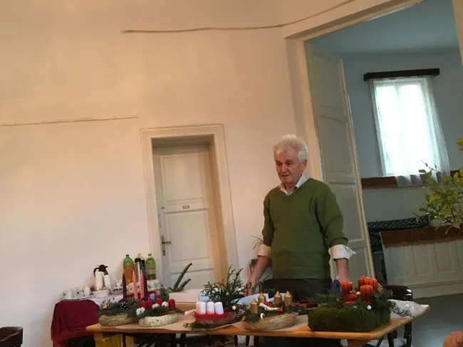 Nagy volt a nyüzsgés szombat délután a Templom és Iskolánál, nem véletlenül: idén szerencsére még többen szerettek volna bekapcsolódni az adventi koszorú készítésbe. Ez alkalommal segítségünk is akadt Gáll László személyében, aki igazán hasznos tanácsokkal és minőségi anyagokkal járult hozzá az alkotáshoz.
