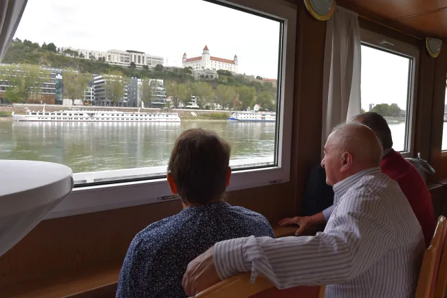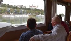 A Megbecsültek Társaságának tagjai a Galántai járás településein szálltak fel a buszokra, amelyek egészen a pozsonyi kikötőig szállították a csoportokat. A hajóindulás előtt még volt lehetőség egy kis sétát tenni Pozsonyban, vagy egy kicsit megpihenni a Duna-parton. A Žilina nevű hajó alsó és felső szintje is megtelt jókedvű magyar nyugdíjasokkal, akik kávézással és beszélgetéssel töltötték a bő egy órás hajózást. Dévény felé tartva az idő kicsit beborult, de a lelkes kirándulók kedvét nem vette el a kicsit hűvösebb időjárás sem. A dévényi Duna-parton elkészült egy csoportkép, majd az első megálló egy közeli magánkertben található magyar emléktábla volt.