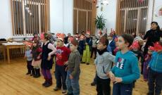 Először az asztalok köré csoportosulva kézműveskedtek a gyerekek. A legkisebbek is örömmel festettek, vágtak, rajzoltak. Egy órával később el is készültek a szebbnél szebb farsangi maszkok. Sok-sok malac, medve, róka és indián sétálgatott közöttünk. Amint befejeződött a munka, mindenki felvette az álarcot, és jöhetett a farsangi énekekkel tarkított közös játék: többek között a “Menjünk medvét vadászni!”, a “Mackó, mackó ugorjál”, valamint az “Előre a kezedet..” kezdetű mondókákat tanulták meg a kicsik. Ezután következett a vidám zenére történő tánctanulás. Mire a szülők megérkeztek, a gyerekek kellemesen elfáradtak és kipirultak. Miután süteménnyel kínáltuk meg őket, örömmel vitték haza az elkészült maszkokat.