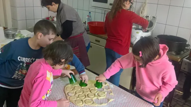 Szombaton reggel a Református Egyházközség lelkes, odaadó önkénteseivel hat kiló lisztből gyúrtuk a farsangi fánk tésztáját, melyet a gyermekekkel közösen sütöttünk meg. Háromszáz pánkó készült az esti Kosaras Farsangi Bálra, mellyel a közösség felnőttjeinek szerettünk volna kedveskedni. Este hét órától indult a mulatozás, és reggel öt óráig járt a lábunk. A talpalávalót a Csíkvacsárcsi Góbé Band húzta, akik fantasztikus hangulatot teremtettek, a tánctér egy percig sem volt üres. Népzene és tánczene egyaránt felcsendült, és zenészeink készségesen húzták ki-ki kedvenc nótáját. Természetesen a felnőttek is jelmezekbe bújtak vagy álarcot viseltek, így igazán jó hangulat alakult ki. Sokat nevettünk, hisz voltak, akik olyan kiválóan öltöttek magukra jelmezeket, hogy ki sem tudtuk találni kit rejt a maszk vagy a ruha. Köszönthettünk közöttünk boszorkányt, arabot, katonát, 20-as évekből ideutazott nőt, focistát és a maszkabálról elengedhetetlen cigány nőt az urával is. A három legötletesebb jelmezt díjjal jutalmaztuk, és mondanom sem kell, nagy volt a kacagás a leleplezéseknél. Éjfélkor tombolát húztunk, tavaszváró hasznos és persze vicces ajándékokat is rejtett a varázsbőrönd.