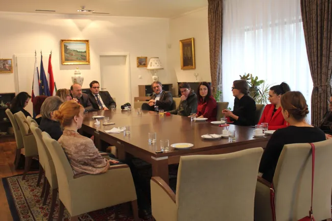Magyarország Pozsonyi Nagykövetségén Szabó József helyettes nagykövet és Kiss Balázs tanácsos fogadtak bennünket. Munkánk iránt érdeklődtek, illetve afelől, hogy mi magunk milyen problémákat érzékelünk kiküldetésünk helyszínein. A nagykövetségen a média részéről a Kossuth Rádió, az Új Szó és a Felvidék ma munkatársai is jelen voltak.