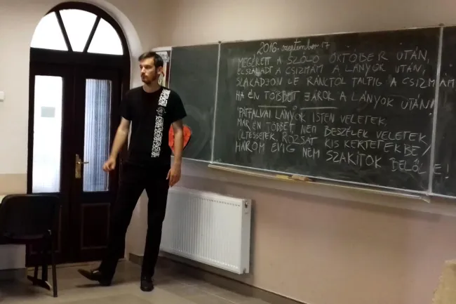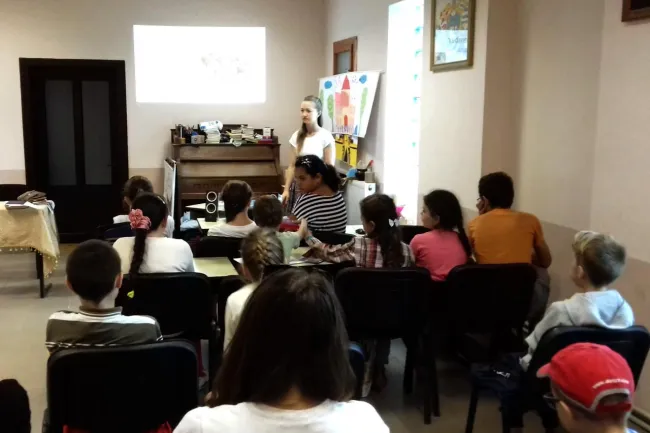 Simoncsics Pál ungvári ösztöndíjast és engem arra kértek a szervezők, hogy havonta egyszer mi is tartsunk foglalkozást a gyerekeknek. Első alkalmunk során a népi kalendáriumból emeltünk ki jeles alkalmakat, úgy mint a szüreti mulatságokat, a betakarításhoz kapcsolódó napokat, de meséltünk a népi időjóslásról is, miközben új szavakat, kifejezéseket tanultunk: juhász, kondás, szüret, szőlő, Lőrinces dinnye.