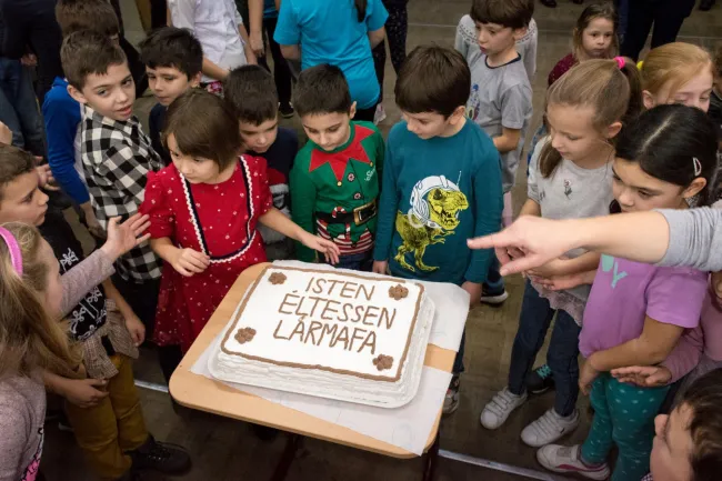A műhelyek végeztével kezdődött a Lármafa nevének ünnepélyes kihirdetése. Az ünnepséget egy nagy torta tette még emelkedettebbé, amelyet a gyereksereg nagy boldogsággal hamar elfogyasztott. Utána következhetett a táncház, kis játékos bevezetés után sóvidékit tanulhatott mindenki, és amíg a fiúk legényeseztek, a lányok énekeket, csujogatásokat tanulhattak. Végül pihenésképp következett a karácsonyváró énekek békés hangulata. Mindeközben játék, kacagás, találkozások és örömteli együttlét ragyogta be az egész dísztermet és onnan az egész Bartók Béla Elméleti Líceumot.