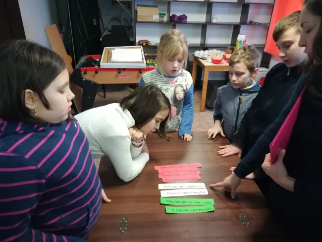 Ezt tettük mi is Vízaknán, amikor is 2018. január 23-án, Pufizzunk együtt a Magyar Kultúra Napja alkalmából címmel, drámafoglalkozást szerveztünk Bajka-Barabás Réka színésznő közreműködésével. Volt drámajáték, beszédkészség-fejlesztés, sok játék és móka. Utolsó feladatként Himnuszunk gyönyörű sorainak elemzése várt ránk, valamint megosztottuk egymással ki-ki számára mi a legkedvesebb és legszebb üzenete Kölcsey ódájának.