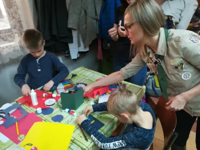A mesék világából visszatértünk saját mesénk továbbszövéséhez, s folytattuk is őrsömmel a megkezdett történetünket, ami egy picinyke cinke jótetteit mesélte el a karácsony közeledtével. A hosszú, lázas munka kiérdemelt jutalmaként érkezett meg az ebéd, mely elköltése után cserkészjátékok következtek. Az alkalmat megragadva rendeztem be a kézművesfoglalkozás színhelyét, melyben kedves segítő kezek álltak rendelkezésemre, s így hála a szülőknek, cserkésztestvéreknek az ajándékműhely hamar megnyithatta kapuit az alkotni vágyók előtt. Alkotásból pedig az idén sem volt hiány, a mézeskalácsok díszes ruhát öltöttek, méhviaszgyertyák készültek, sógyurma fenyődíszek ékíthették a közös karácsonyfát, üdvözlőlapok, karácsonyfadíszek készültek, mindenki megtalálta a számára kedves elkészítendő ajándékot.