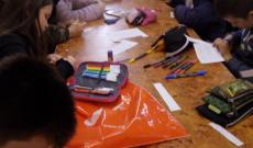Közös kézműveskedés volt az esti program egy részében, ahol népművészeti motívummal díszített könyvjelzőt készítettünk a gyerekekkel. A jó társaság és a kellemes időtöltés kihozta a nagyobb gyerekekből a spontán táncolást, ami egy óra szabad táncot eredményezett a színpadon.