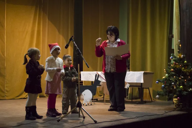 Először a református óvoda növendékei léptek fel karácsonyi versekkel, mondókákkal, ezután pedig az általános iskolások gazdag műsora következett. A betlehemes műsorszám és az ünnepi versek és énekek mellett számomra a legizgalmasabb az az előadás volt, amelyben a gyerekek bemutatták a hertelendyfalvi székelyek Bukovinából hozott, hagyományos karácsonyi szokásait. Habár ezek a szokások részben még ma is élnek a faluban, a csoportvezetők fontosnak tartják, hogy ily módon is segítsék a hagyomány továbbélését.