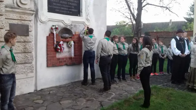 A lemenő nap fényében szavalattal és énekkel színesítették a megemlékezést, ezt követően pedig a koszorúzás következett, melynek színvonalát a jászárokszállási cserkészcsapat díszőrsége emelte.