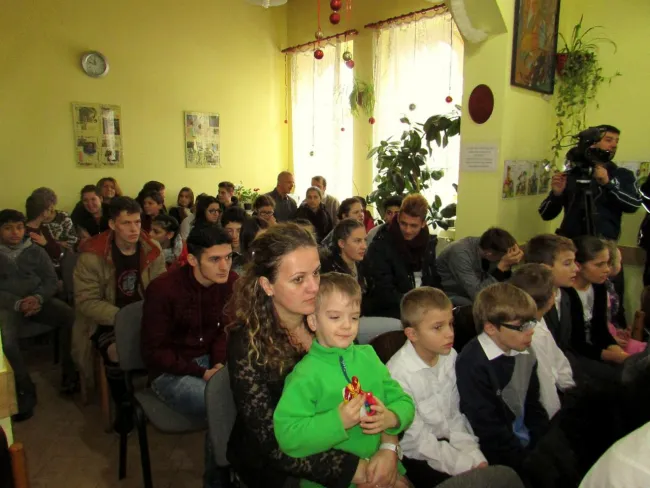 Vasárnap délelőtt ismét útra keltünk, ezúttal Gyergyószentmiklós felé vettük az irányt. Itt Csaba testvér tartott szentmisét, aki az evangélium utáni elmélkedésében külön kiemelte a helyi otthon névadóját, Szent Annát, és életét példaként állítva felhívta a figyelmet a családban fontos nagyszülői feladatkörre, annak jelentőségére. A szentmise végén az otthon gyermekei megkapták és vidáman bontogatták a régóta várt karácsonyi ajándékokat, ezt követően pedig mi adtuk át a dévai ház jelképes ajándékát, a Margaréta Tánccsoport műsorát.