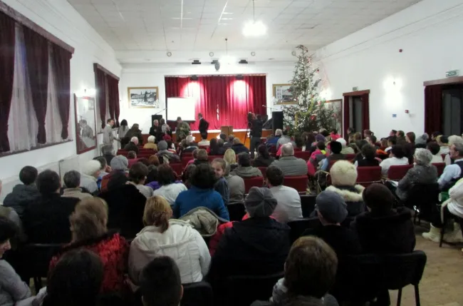 Az együttes számára az élményekben gazdag kirándulás utolsó állomása Borszéken volt. Az idevezető utat a táncosok különösen élvezték, hiszen a hegyek között kanyarogva a táj valóban úgy festett, mintha egy karácsonyi mesében jártunk volna. A havas erdők között vezető úton végül eljutottunk az Alapítvány egyik legújabb bentlakó házának otthont adó településre. A művelődési házban összegyűlt a város apraja-nagyja, idősek és fiatalok izgatottam várták az ünnepi műsor kezdetét. Mik József polgármester nyitóbeszéde után rögtön a dévai tánccsoport produkciója következett, majd a bentlakó otthon gyermekei adták elő Andersen ismert meséjét, A kis gyufaárus lányt feldolgozó színdarabjukat. Ez után a nagyobb diákok karácsonyi dalokra összeállított, táncos zumba- koreográfiája következett, majd az est zárásaként a helyi énekkar karácsonyi előadását hallhatta a közönség.