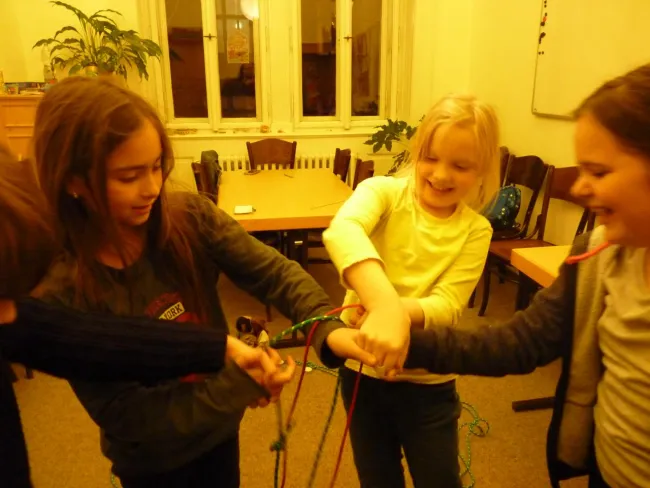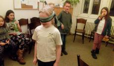 A bizalom fontosságát Sámson és Delila viszonyában szintén egy gyakorlattal mélyítettük el. A gyerekek párokat alkottak, majd az egyiknek bekötöttük a szemét, és meg kellett találnia egy bizonyos, számára ismeretlen helyen elrejtett tárgyat úgy, hogy a társa szóban (és CSAK szóban, fizikai kontaktus nélkül!) irányította, segítve kikerülni az elé helyezett akadályokat. Majd ugyanezt helyzetcserével is megcsináltuk: aki az első körben irányított, az vált irányítottá – és mindezt azért, hogy megtapasztalják, milyen helyzetben volt az imént a másik. Ezzel tudatosítva az első körből szerzett tanulságokat, hogy figyeljenek oda az esetlegesen elkövetett hibák elkerülésére, vigyázzanak a társukra, hisz ebben a helyzetben ő a felelős érte. Illetve várjon a látó fél irányítására, bízzon abban, hogy igenis jó helyre vezeti őt és vigyáz rá.