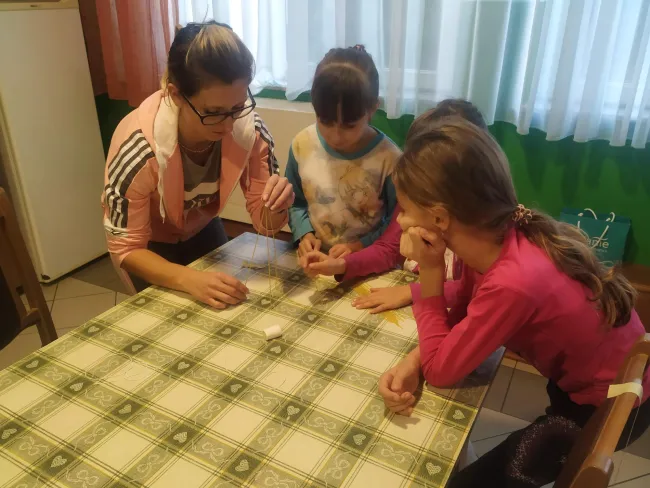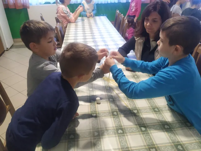 Miután mindenki kifújta magát és meguzsonnázott, sor került a nagy kihívásra is: négyes csapatokba tömörülve spagettiből, madzagból és ragasztószalagból kellett minél magasabb tornyot építeni. A csapatok jól teljesítettek, a legmagasabb torony közel fél méteresre sikeredett, amire a tornyot felhúzó tésztaépítész lányok nagyon büszkék is voltak.