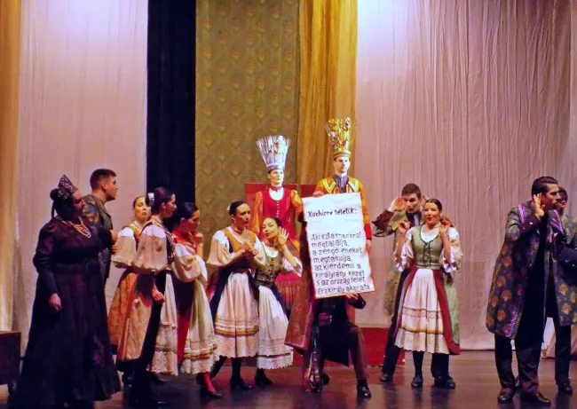 Egy vidám táncmesével érkezett a medgyesi gyerekekhez a Háromszék Táncegyüttes december 14-én, szerda délelőtt. Magyar ovisokkal és a Báthory István Általános Iskola diákjaival telt meg a Traube színházterme, ahol egy pisszenés nélkül izgulták végig az Igaz Legény kalandjait és szorítottak a Szomorú Királylánynak, hogy rátaláljon saját hangjára.