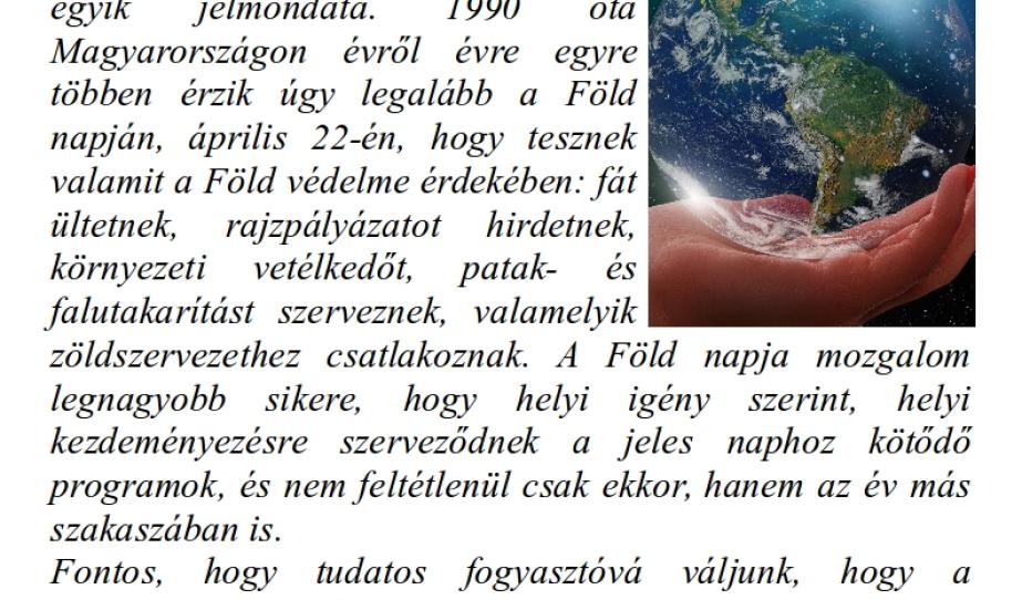 A Föld-, és a Könyv Napja volt Hosszúmezőn