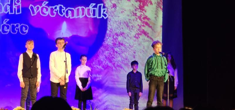 Csim-Bumm gyermekszínjátszó csoport verses előadása: „Harangok zúgjatok” címmel (Kovács István, Aranyosi Ervin, Reményik Sándor, Wass Albert, Juhász Gyula és Bede László Miklós verseiből)