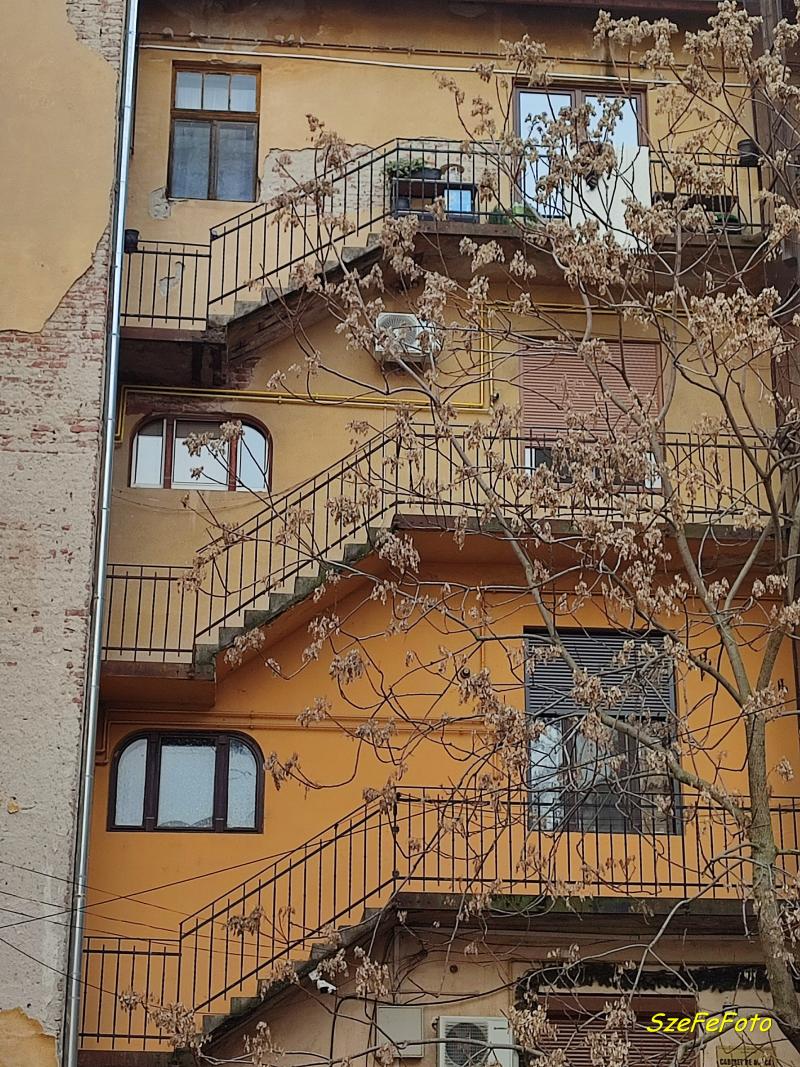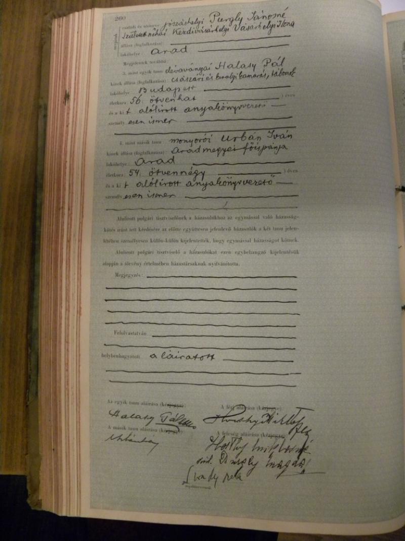 A városi palota éppen ezért épült fel Andrényi pezsgőgyáros szecessziós palotája és az Arad-Csanádi Egyesült Vasutak (erre még később vissza fogunk térni) eklektikus stílusú székháza közé. Ezeknek az épületeknek a mai állapota enyhén szólva is elkeserítő... Semmi látható nem utal egykori dicsőséges múltjukra... A házasság napján a menyegzői házat "illő módon" feldíszítették, majd az emeleten megrendezett polgári esküvő után innen indult el a hosszú lovaskocsi menet a Deák utcai református templomba. (Lásd a fönt hivatkozott beszámolómban.)