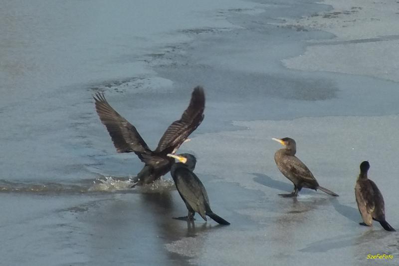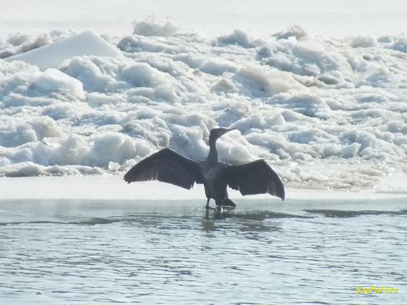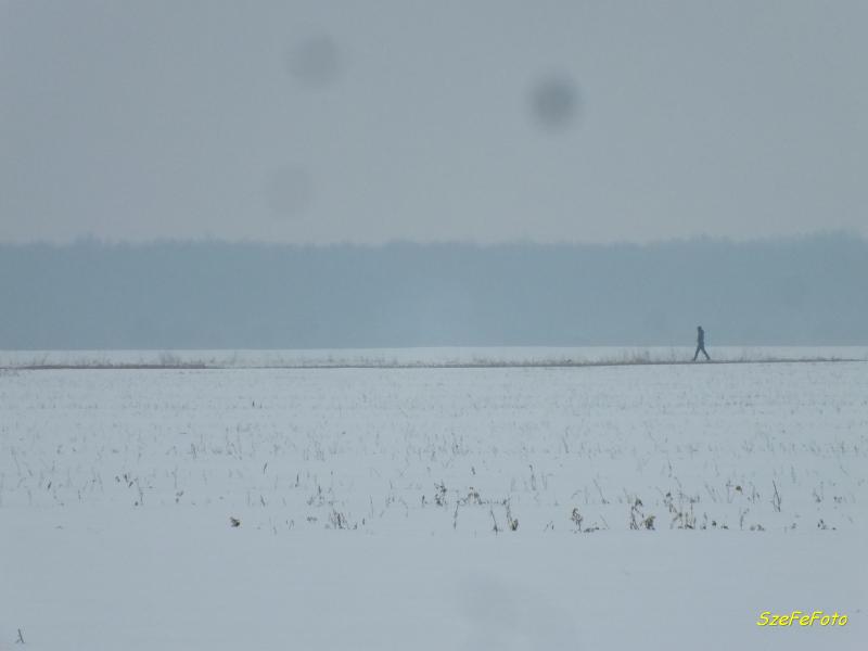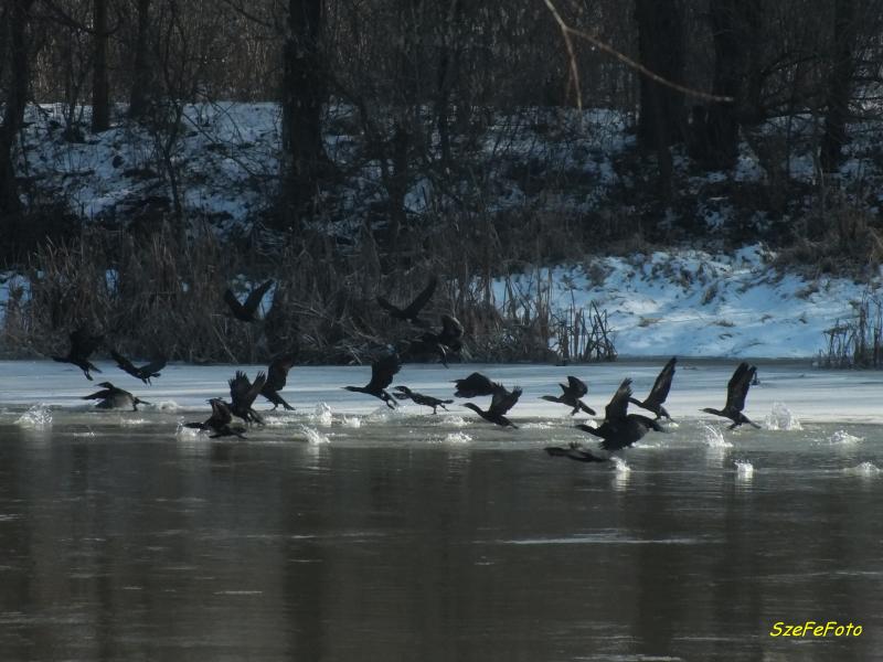 Aztán fölgyorsulnak az események: kócsagok, darvak, kárókatonák kezdik el tarkítani a vizet a partot, a jégtáblák közt és a havon egyaránt. Az iménti megugrott darura dermedt ujjaim hamar megélénkülnek amint munkát lelnek az objektívvel, a különböző vezérlőgombokkal babrálva. Visszafelé indulva, nagy ívben kanyarodok el a folyóparttól és kisvártatva a lépteimmel megzavart surrogó a hó neszezésébe, valami más monotonitás, a távoli forgalom folyamatos surrogása keveredik. Ejjjh... Búcsúzóul még valami csahos bolhazsák is gorombán tisztel meg figyelmével, azonban egy alkalmi husánggal hamar eltérítem sötét szándékától.