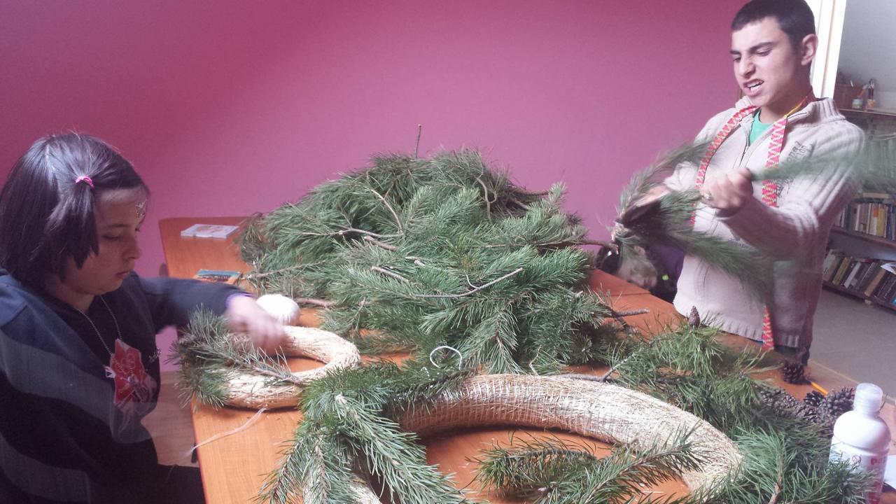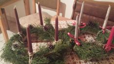 Az elmúlt héten adventre készülődve, a gyerekekkel együtt a közeli erdőbe mentünk, hogy az adventi koszorúkhoz fenyőágakat gyűjtsünk. A délutánunk igen izgalmasra, s örömtelire sikerült. Az utána következő napokban adventi koszorúkat készítettünk. Az első gyertyagyújtásra szombaton este, a 18 órai szentmisén került sor. Károly atya a gyertyagyújtást követően lekapcsolta a villanyokat, s egyetlen gyertyafénynél prédikált, így emelve az ünnepi hangulatot.