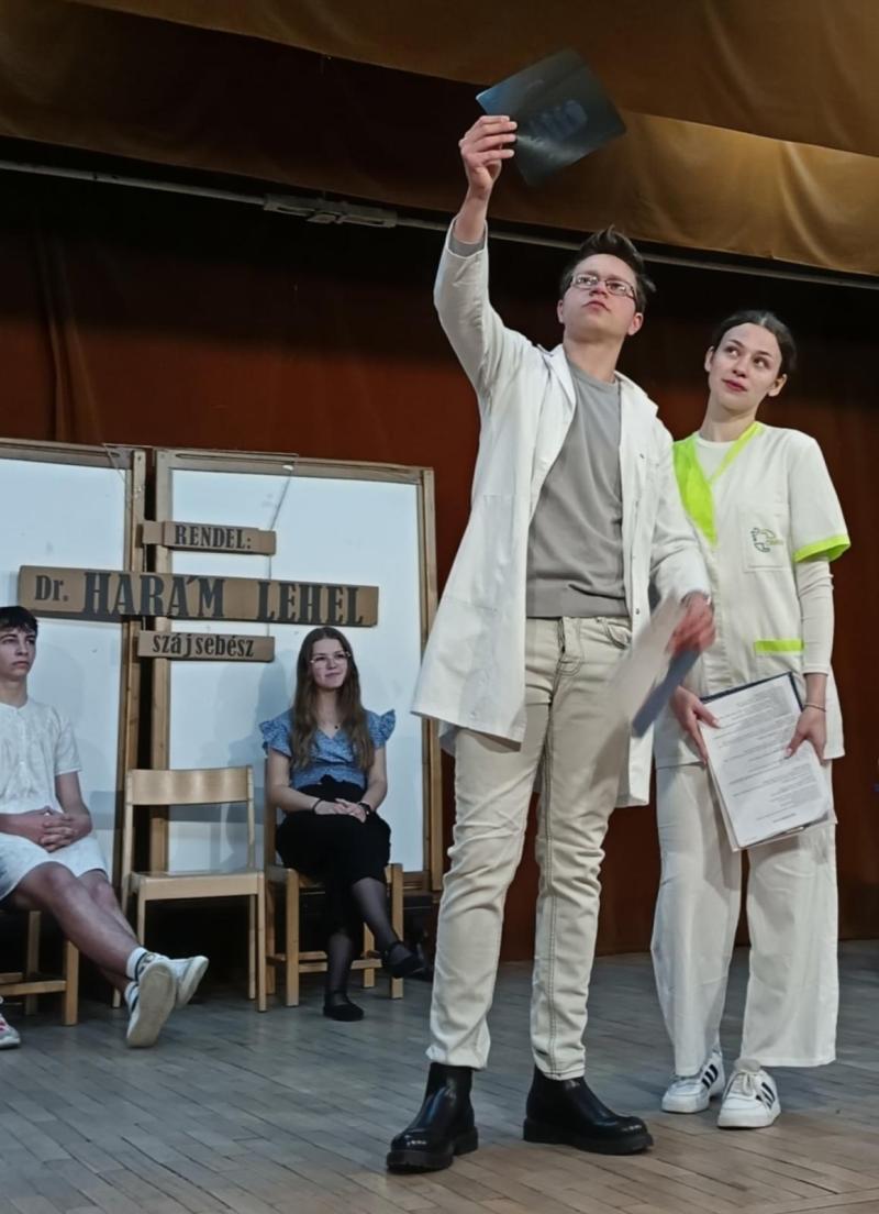 Hónapokon át heti egy rövid próbával készülvén végül a darabot háromszor adtuk elő május 15.-én. Délelőtt a szamosújvári Kemény Zsigmond Elméleti Líceum 5-8-as, majd 9-12-es diákjainak, és este a város magyar közönségének is.
