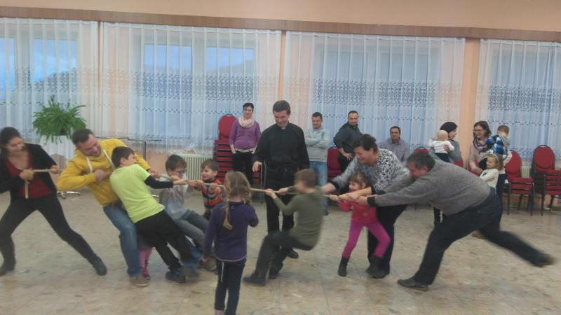 November 19-én, vasárnap került sor a már rendhagyónak számító Családos délutánra, melyen Márk atya, Kolon lelkipásztora beszélgetett a szülőkkel a bibliai családokról, míg én a "gyereksarokban" kézműves foglalkozással igyekeztem lekötni a gyerekek figyelmét, két éves kortól egészen kilenc éves korig. Az esemény megkoronázásaként szerveztünk egy kötélhúzó versenyt is a családok között, melyhez pogácsa, illetve egyéb finomságok majszolásával gyűjthettek erőt a kicsik és szüleik.