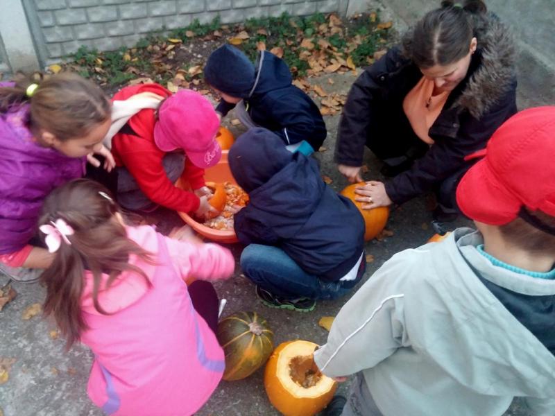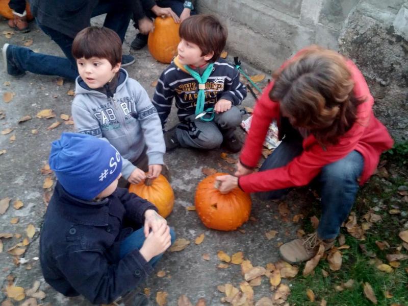 A dévai 55. sz. Kőműves Kelemen cserkészcsapat őszi töklámpás estjéneknéhány pillanata. Déva cserkész psp Kőműves Kelemen Töklámpás