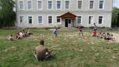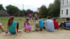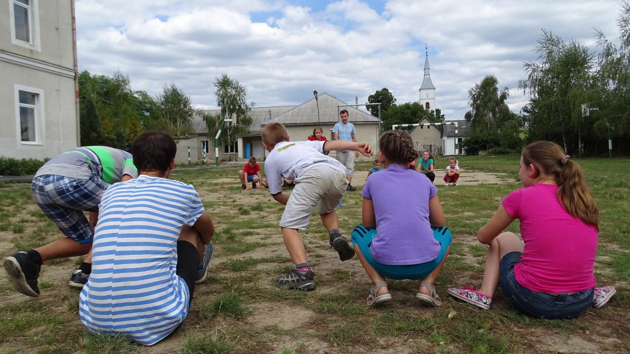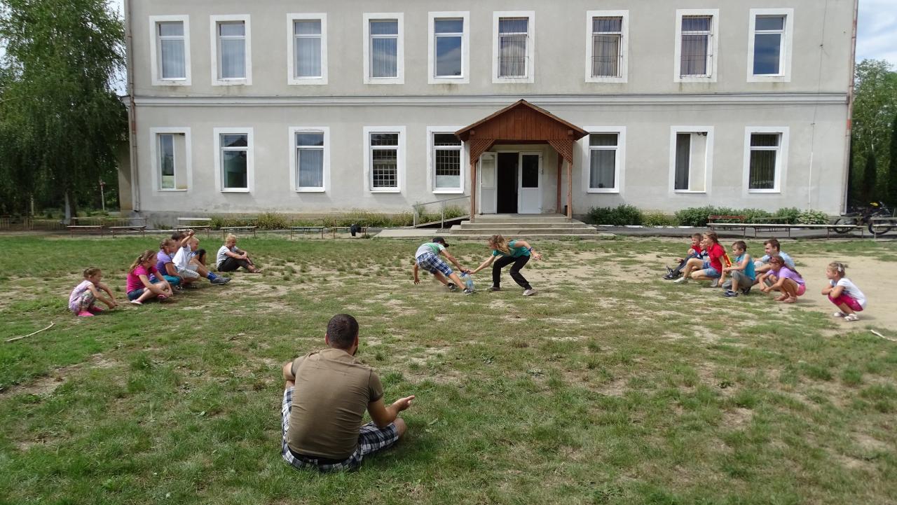 Az Együtt Kárpátaljáért közösségtámogató misszió keretében több önkéntes fiatal cserkész is érkezett Magyarországról Kárpátaljára. Velük a Beregrákosi Általános Iskola udvarán találkoztam játék közben. Azért, hogy egy kicsit én is ismerkedhessek a gyerekekkel, beálltam közéjük fogózni, sőt egy gyorsasági-ügyességi játékot is kipróbáltunk, amit mi otthon, Szeged környékén „gyufázásnak” hívunk. Ott a gyufásdoboz megszerzése a cél, de bármilyen eszközzel helyettesíthető: itt például egy ásványvizes palackra helyezett gumikesztyűért folyt a küzdelem.