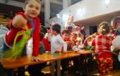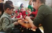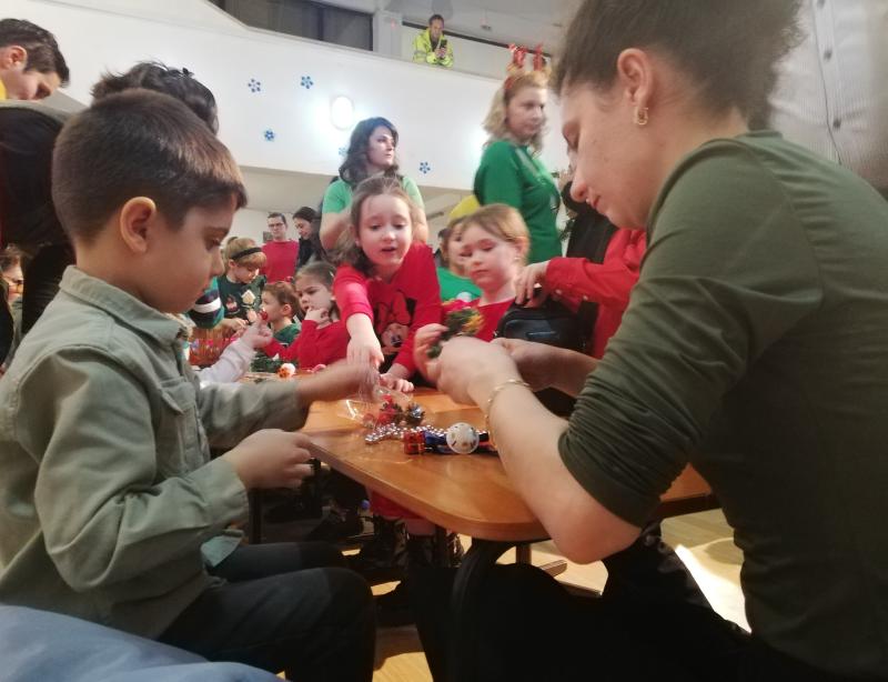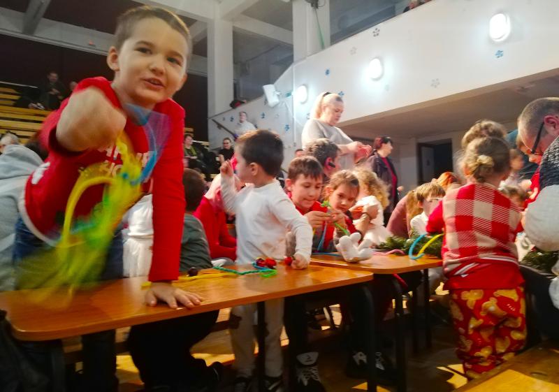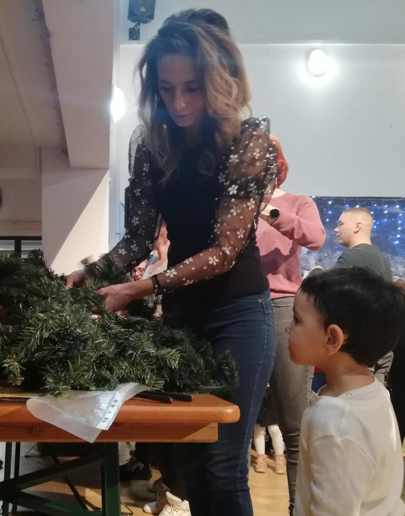 Megérdemlik az ajándékot. A Mikulástól mindenki kapott egy papírházikót. Aztán hirtelenjében az apukák átrendezték a teret, a padokat, asztalokat középre hordták. Előkerültek a harapnivalók, a színes, fényes, alapanyagok, a dísznek, koszorúnak valók. A szülők, nagy testvérek is kedvet kaptak. Szép, mikor a generációk így, együtt, közösen…